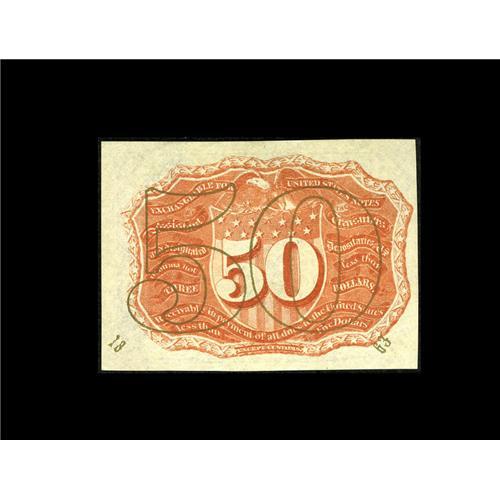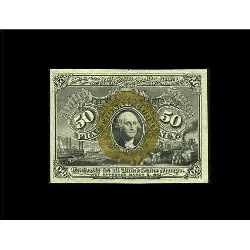 <B>Fr. 1316 50c Second Issue Very Choice New.</B></I> This note poses a slight dilemma, as the bronzing is perfectly centered, however the margins are not for the full gem grade.