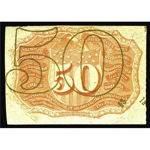 <B>Fr. 1317 50c Second Issue Choice New.</B></I> The surcharges are out of alignment on what is believed to be a Fr. 1317. Surcharges "63 and 18" are found in the lower right-hand corner.