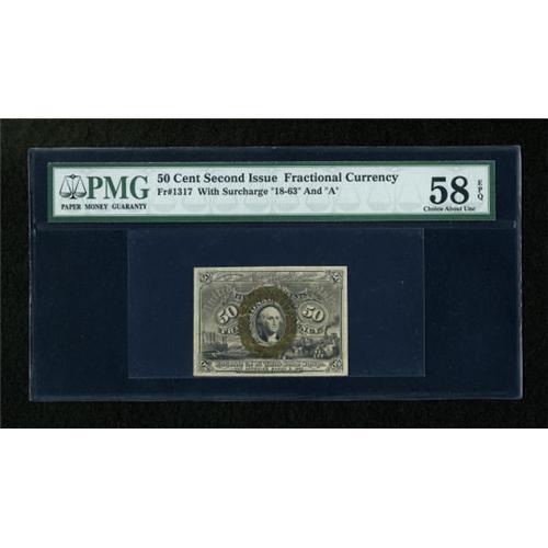 <B>Fr. 1317 50c Second Issue PMG Choice About Unc 58 EPQ.</B></I> This is a colorful example that is well margined.<BR><BR><b>Shipping:</b> Coins & Currency (<a target="_blank" href="http://www.heritageauctions.com/common/shipping.php">view shipping information</a>)