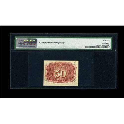 <B>Fr. 1318 50c Second Issue PMG Gem Uncirculated 65 EPQ.</B></I> Bright paper contrasts perfectly against the deeply printed design elements. The back is a little too high for this note to command a higher grade.<BR><BR><b>Shipping:</b> Coins & Currency (<a target="_blank" href="http://www.heritageauctions.com/common/shipping.php">view shipping information</a>)
