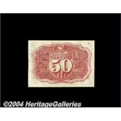 Fr. 1318 50c Second Issue Very Choice New. A strikingly handsome example of a type that is extremely challenging to find in this high a grade. With a tiny bit more margin toward the bottom of the left face, the note would rate the full Gem grade. The print quality is unusually sharp. <BR><BR><B>Important notice:</B> Heritage usually auctions material at the rate of 200-250 lots per hour. On some occasions eBay Live bid software or the Internet may not be able to keep up with the pace of the auction. We recommend placing a realistic absentee bid now as insurance to avoid disappointment. Occasionally the auctioneer may eliminate or reject an eBay Live bid, and the auctioneer may also reopen a lot after the close of the eBay live bidding (usually because we missed an audience bid), and may reject your bid even if it shows you as the winning bidder. By bidding via eBay Live, you agree that Heritage may award the lot to another bidder at its sole discretion under the circumstances described above or any other reasonable circumstances. Since eBay bids are not shown to us until we open the lot on the floor, we treat those bids just like floor bids. In most cases the floor responds before the eBay bid is presented to us, due to Internet lag time, so for consistency we have made it a policy that floor bids are always considered first over tie eBay live bids. Also please note that all Heritage lots purchased through eBay Live carry a 20% Buyer's Premium. Please make sure you read the Terms and Conditions before you bid. <BR><BR><B>IMPORTANT ANNOUNCEMENT ABOUT RESERVES:</B> Heritage now divulges all reserves on its web site 7 days before every auction. If you want to know whether the reserve on this lot has been met, and if not, what the reserve amount is, please visit this lot page on the HeritageCoin.com web site, or email: bid@HeritageGalleries.com