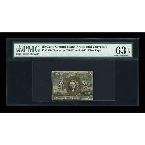 <B>Fr. 1320 50c Second Issue PMG Choice Uncirculated 63 EPQ.</B></I> The surcharges are deeply printed and the design is boldly imprinted on the fiber paper.<BR><BR><b>Shipping:</b> Coins & Currency (<a target="_blank" href="http://www.heritageauctions.com/common/shipping.php">view shipping information</a>)