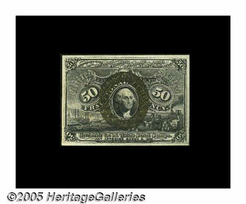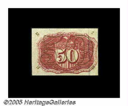 <B>Fr. 1321 50¢ Second Issue Very Choice New.</B></I> This lovely and scarce Fiber Paper Fifty Cent note has the full appearance of a Gem from the face. The back is off-center to the right, just touching the edge. The back also has a top-to-bottom extremely narrow offset smear.
