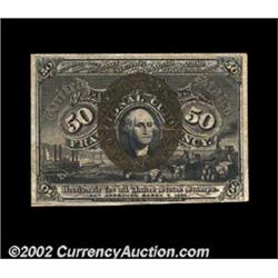 Fr. 1321 50c Second Issue Extremely Fine. This scarce Fiber Paper note is lightly quarter-folded, but it is otherwise defect-free. It's a much scarcer number, and this well centered, handsome example should realize . . . Important notice: We expect to be auctioning lots at the rate of 200-250 per hour. Sometimes eBay Premier live bid software cannot keep up with that pace, so we strongly recommend that you place a realistic proxy bid now as insurance to avoid disappointment. Also please note that all Heritage/CAA lots purchased through eBay Premier carry a 20% Buyer's Premium. Please make sure you read the Terms and Conditions.