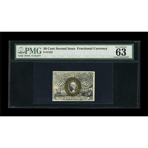 <B>Fr. 1322 50¢ Second Issue PMG Choice Uncirculated 63 EPQ.</B></I> A brightly colored example of the most available Fiber Paper issue. Save for a tight left face margin, this pretty piece seems to have all the attributes of a Gem.<BR><BR><b>Shipping:</b> Coins & Currency (<a target="_blank" href="http://www.heritageauctions.com/common/shipping.php">view shipping information</a>)