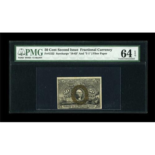 <B>Fr. 1322 50c Second Issue PMG Choice Uncirculated 64 EPQ.</B></I> A little margin tightness at lower left accounts for the grade on this otherwise bright and pleasing fiber paper issue.<BR><BR><b>Shipping:</b> Coins & Currency (<a target="_blank" href="http://www.heritageauctions.com/common/shipping.php">view shipping information</a>)