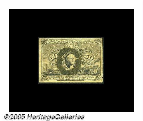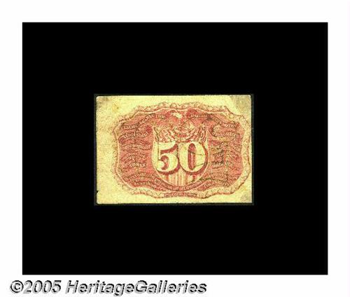 <B>Fr. 1322 Milton 2R50.9a 50¢ Second Issue Inverted Back Engraving Fine.</B></I> Unique to our best knowledge, and rather attractive in spite of its low technical grade. The corner surcharges are very nearly gone, but the note is a Fr. 1322 without question. This is an invert number that Milt never owned. It's listed in Tom's 2002 article as simply "reported," indicating that he acquired it after that date. An important rarity.