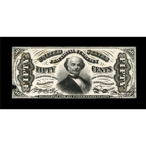 <B>Milton 3E50F.4b 50c Third Issue Face Plate Proof</B></I> Previously sold by Stacks in their June 2005 sale, and described as "Face Proof on thin card stock by the Treasury Department with imprint at the bottom. Narrow margin proof of the regular issue face design without bronze surcharges. Very Rare and desirable face proof on a thin card stock. A small chip off the left edge, otherwise Nearly Choice." An interesting piece, and we concur with their opinion.<BR><BR><b>Shipping:</b> Coins & Currency (<a target="_blank" href="http://www.heritageauctions.com/common/shipping.php">view shipping information</a>)