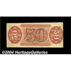 Fr. 1324 50c Third Issue Spinner Choice New. Good paper originality, with strong ink color and primarily large margins. If the left face margin were a bit broader, the note would make the Gem grade. <BR><BR><B>Important notice:</B> Heritage usually auctions material at the rate of 200-250 lots per hour. On some occasions eBay Live bid software or the Internet may not be able to keep up with the pace of the auction. We recommend placing a realistic absentee bid now as insurance to avoid disappointment. Occasionally the auctioneer may eliminate or reject an eBay Live bid, and the auctioneer may also reopen a lot after the close of the eBay live bidding (usually because we missed an audience bid), and may reject your bid even if it shows you as the winning bidder. By bidding via eBay Live, you agree that Heritage may award the lot to another bidder at its sole discretion under the circumstances described above or any other reasonable circumstances. Since eBay bids are not shown to us until we open the lot on the floor, we treat those bids just like floor bids. In most cases the floor responds before the eBay bid is presented to us, due to Internet lag time, so for consistency we have made it a policy that floor bids are always considered first over tie eBay live bids. Also please note that all Heritage lots purchased through eBay Live carry a 20% Buyer's Premium. Please make sure you read the Terms and Conditions before you bid. <BR><BR><B>IMPORTANT ANNOUNCEMENT ABOUT RESERVES:</B> Heritage now divulges all reserves on its web site 7 days before every auction. If you want to know whether the reserve on this lot has been met, and if not, what the reserve amount is, please visit this lot page on the HeritageCoin.com web site, or email: bid@HeritageGalleries.com