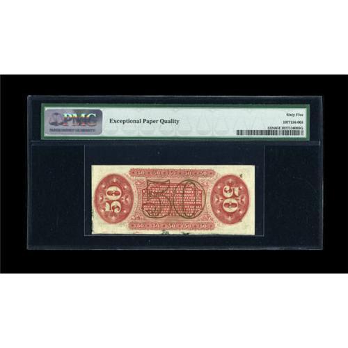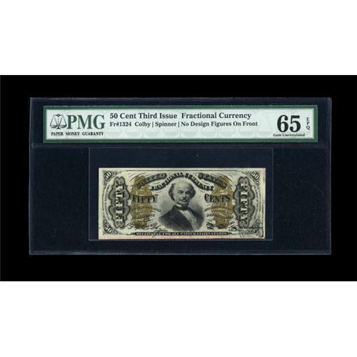 <B>Fr. 1324 50c Third Issue Spinner PMG Gem Uncirculated 65 EPQ.</B></I> This is a well margined Spinner that has a bit of red press bed smearing visible on the face.<BR><BR><b>Shipping:</b> Coins & Currency (<a target="_blank" href="http://www.heritageauctions.com/common/shipping.php">view shipping information</a>)