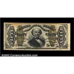Fr. 1324 50c Third Issue Spinner Very Choice New. A pretty Red Back Spinner with good margins and nice color. The back is beautifully centered, and the note would rate the full Gem grade if the top face margin were as broad as the bottom. Important notice: We expect to be auctioning lots at the rate of 200-250 per hour. Sometimes eBay Premier live bid software cannot keep up with that pace, so we strongly recommend that you place a realistic proxy bid now as insurance to avoid disappointment. Also please note that all Heritage/CAA lots purchased through eBay Premier carry a 20% Buyer's Premium. Please make sure you read the Terms and Conditions.