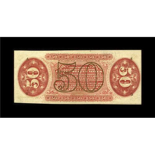 <B>Fr. 1324 50c Third Issue Spinner Very Choice New.</B></I> Three broad margins are found on this note that also has a fourth bottom margin that starts off broad near the left corner, but becomes increasingly smaller as it travels to the right corner. At the right corner it barely touches the frame line.<BR><BR><b>Shipping:</b> Coin/Currency (<a target="_blank" href="http://www.heritageauctions.com/common/shipping.php">view shipping information</a>)