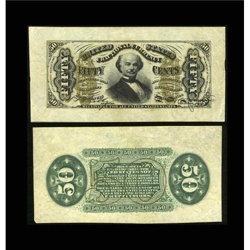 <B>Fr. 1324SP 50c Wide Margin Pair Third Issue Spinner Extremely Fine.</B></I> The face note exhibits a centerfold, and both notes have light residue from a previous mounting at top.