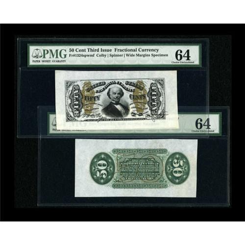 <B>Fr. 1324SP 50c Wide Margin Pair Third Issue Spinner PMG Choice Uncirculated 64.</B></I> A pleasing well matched pair seldom offered together.<BR><BR><b>Shipping:</b> Coins & Currency (<a target="_blank" href="http://www.heritageauctions.com/common/shipping.php">view shipping information</a>)