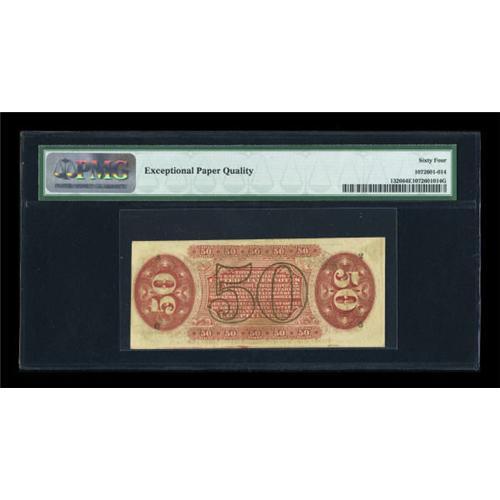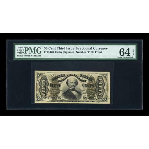 <B>Fr. 1326 50c Third Issue Spinner PMG Choice Uncirculated 64 EPQ.</B></I> This Spinner would be a perfect Gem with just a touch better back centering. The face margins are simply huge, the bronze is bright, the ink colors are perfect and the note is covered with deep, original embossing.<BR><BR><b>Shipping:</b> Coins & Currency (<a target="_blank" href="http://www.heritageauctions.com/common/shipping.php">view shipping information</a>)