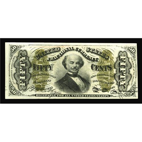 <B>Fr. 1327 50c Third Issue Spinner About New.</B></I> While having the initial appearance of a Choice example, closer scrutiny reveals three light bends on this totally unmolested, deeply embossed note.