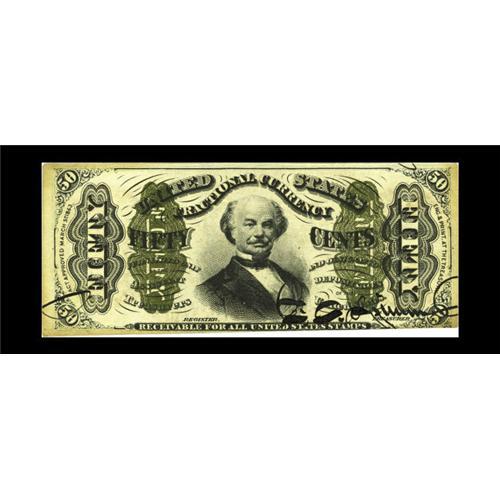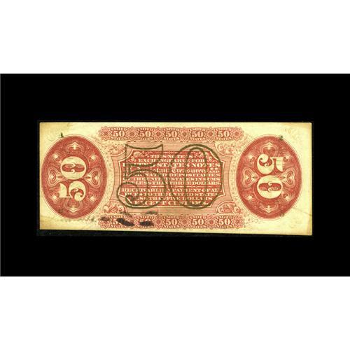 <B>Fr. 1328? (29?) Milton 3R50.14d 50¢ Third Issue Spinner Choice New.</B></I> Signed by Spinner only. A very rare error that Tom O'Mara acquired as part of his purchase of the Doug Hales Collection. The note has all of its original embossing and is strictly uncirculated but the paper shows some aging at the edges. We're a little unsure of the census for errors of this type, and realize that darn rare is an inexact term, but it certainly applies here. The only other example we ever handled was the Milt Friedberg piece, which realized $4,400 on an estimate of $3,000-up nine years ago. In the O'Mara collection this piece was overlooked at just under $2,500.