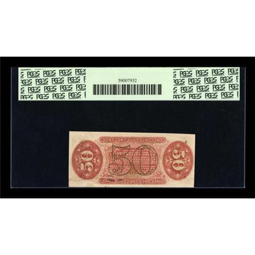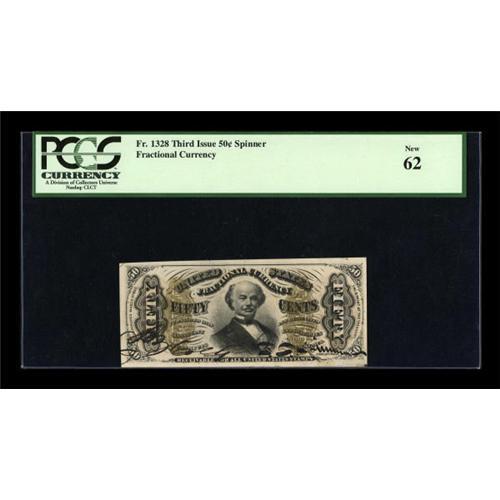 <B>Fr. 1328 50c Third Issue Spinner PCGS New 62.</B></I> Boldly hand autographed, with irregular but very large margins.<BR><BR><b>Shipping:</b> Coins & Currency (<a target="_blank" href="http://www.heritageauctions.com/common/shipping.php">view shipping information</a>)