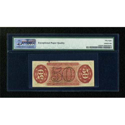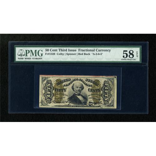 <B>Fr. 1328 50c Third Issue Spinner PMG Choice About Unc 58 EPQ.</B></I> This is a bright autographed red seal that exhibits a bit of press bed smearing.<BR><BR><b>Shipping:</b> Coins & Currency (<a target="_blank" href="http://www.heritageauctions.com/common/shipping.php">view shipping information</a>)