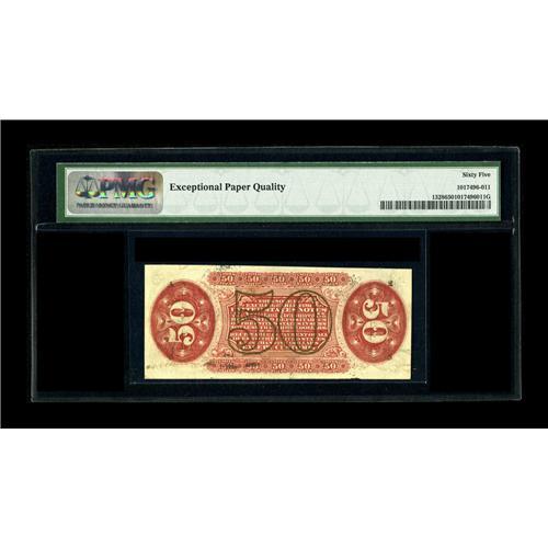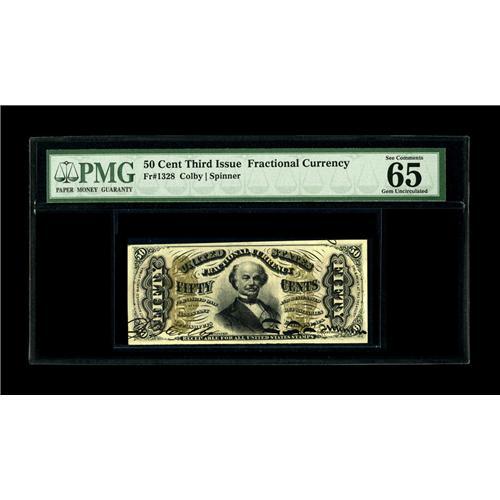 <B>Fr. 1328 50c Third Issue Spinner PMG Gem Uncirculated 65 EPQ.</B></I> An attractive example of this hand-signed number that has bold signatures and bright ink colors.<BR><BR><b>Shipping:</b> Coin/Currency (<a target="_blank" href="http://www.heritageauctions.com/common/shipping.php">view shipping information</a>)