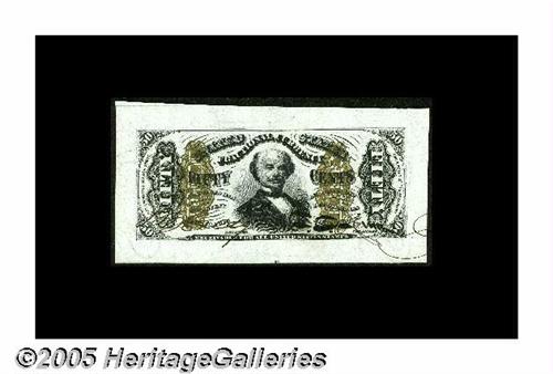 <B>Fr. 1328SP 50¢ Third Issue Wide Margin Face New.</B></I> Milton 3P50F.4. Gem in all respects but for holes at the broad strokes of the Spinner signature. The original embossing is pronounced, and this Wide Margin Specimen has plate number 42 at the bottom center.