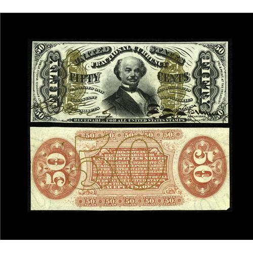 <B>Fr. 1328SP 50c Third Issue Narrow Margin Pair Very Choice New.</B></I> From the O'Mara sale, the face of this note is a perfect gem with bold signatures and color and the back would be a near gem but for the lower right corner being lightly clipped. This cataloger feels that the assigned grade is more appropriate due to the overall aesthetic appeal of the pair.