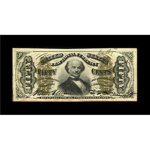 <B>Fr. 1329 50c Third Issue Spinner Choice New.</B></I> Four wide margins are found on this Spinner. The bottom margin reveals pressbed smearing. It also is noticed that the name "Cadby" has been penned near the upper margin.<BR><BR><b>Shipping:</b> Coin/Currency (<a target="_blank" href="http://www.heritageauctions.com/common/shipping.php">view shipping information</a>)