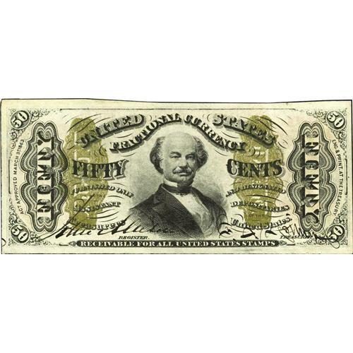 <B>Fr. 1329 50c Third Issue Spinner Choice New.</B></I> This scarcer number has nice face margins and dark autographed signatures of Allison and Spinner. Also, the back is shifted close to the top edge that is not straight across.