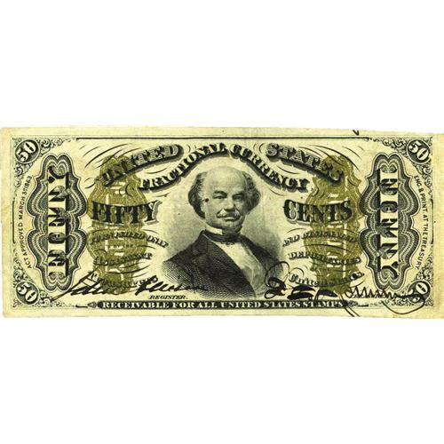 <B>Fr. 1329 50c Third Issue Spinner Extremely Fine.</B></I> This is a beautiful circulated example of this much scarcer Allison-Spinner hand-signed variety that has four bountiful margins, crisp paper surfaces and excellent bronzing.