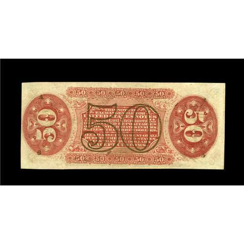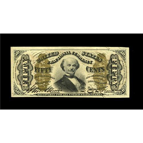 <B>Fr. 1329 50c Third Issue Spinner Gem New.</B></I> Beautiful face margins, ideal color, bright bonze and incredibly deep, original embossing all highlight this much scarcer Allison-Spinner hand-signed note. If the back centering were not shifted just a tad to the left, this gorgeous piece would be absolutely Superb. As it is, it's one of the nicest of its number we've seen.