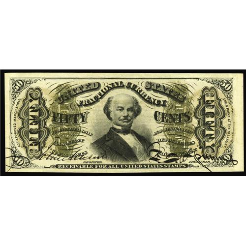 <B>Fr. 1329 50c Third Issue Spinner Gem New.</B></I> The margins are quite healthy on this well embossed, autographed Spinner. The back is well centered on this underappreciated issue.