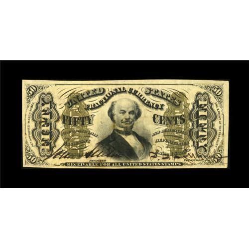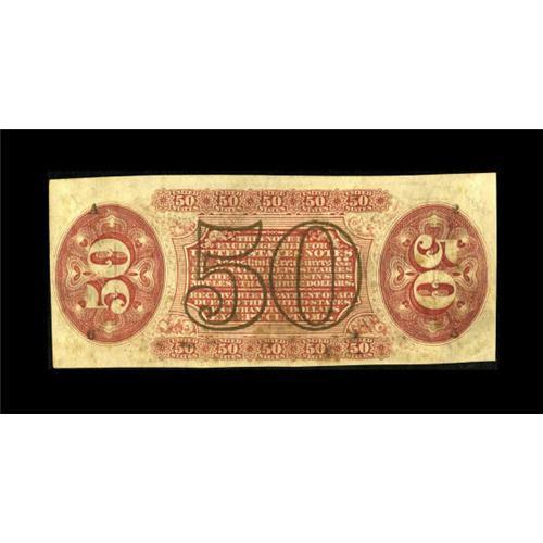 <B>Fr. 1329 50c Third Issue Spinner New.</B></I> This Allison-Spinner hand-signed variety has always been popular with collectors due to its scarcity and availability in New condition. This example has a technical grade of Choice New or better with ample margins, bright bronzing and exceptional embossing. The presence of a central glue spot is the grade-limiting factor.<BR><BR><b>Shipping:</b> Coins & Currency (<a target="_blank" href="http://www.heritageauctions.com/common/shipping.php">view shipping information</a>)