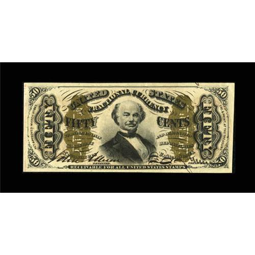 <B>Fr. 1329 50c Third Issue Spinner New.</B></I> A couple of soft corner bends which are not into the design are noticed on this nicely bronzed and colorful Spinner.<BR><BR><b>Shipping:</b> Coins & Currency (<a target="_blank" href="http://www.heritageauctions.com/common/shipping.php">view shipping information</a>)