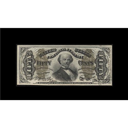 <B>Fr. 1331 50c Third Issue Spinner Choice New.</B></I> A bit of light handling accounts for the grade on this otherwise broadly margined and deeply embossed Spinner.
