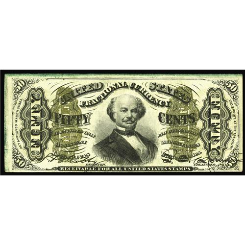 <B>Fr. 1332 50c Third Issue Spinner Choice New.</B></I> This gorgeous Spinner is strongly embossed with what looks like extra BEP inking around the edges. A very faint center fold breaks the surface.