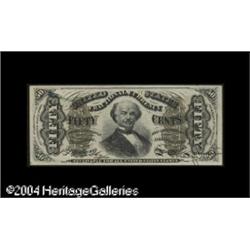 Fr. 1333 50c Third Issue Spinner Choice New. A very <B>Fr. 1333 50c Third Issue Spinner Choice New.</B></I> A very nice Type I Green Back Spinner that nearly makes it to the Gem grade. The only detraction on the note are a few as-made ink smears. The original embossing is deep and pronounced. <BR><BR><B>Important notice:</B> Heritage usually auctions material at the rate of 200-250 lots per hour. On some occasions eBay Live bid software or the Internet may not be able to keep up with the pace of the auction. We recommend placing a realistic absentee bid now as insurance to avoid disappointment. Occasionally the auctioneer may eliminate or reject an eBay Live bid, and the auctioneer may also reopen a lot after the close of the eBay live bidding (usually because we missed an audience bid), and may reject your bid even if it shows you as the winning bidder. By bidding via eBay Live, you agree that Heritage may award the lot to another bidder at its sole discretion under the circumstances described above or any other reasonable circumstances. Since eBay bids are not shown to us until we open the lot on the floor, we treat those bids just like floor bids. In most cases the floor responds before the eBay bid is presented to us, due to Internet lag time, so for consistency we have made it a policy that floor bids are always considered first over tie eBay live bids. Also please note that all Heritage lots purchased through eBay Live carry a 20% Buyer's Premium. Please make sure you read the Terms and Conditions before you bid. This lot is being auctioned in conjunction with a live floor auction by Heritage Galleries & Auctioneers. All final auction and invoice information will be supplied by Heritage Galleries & Auctioneers, and all other information should be considered preliminary. Lot:15431