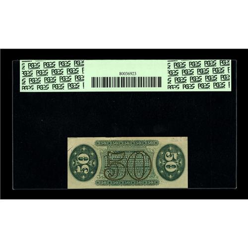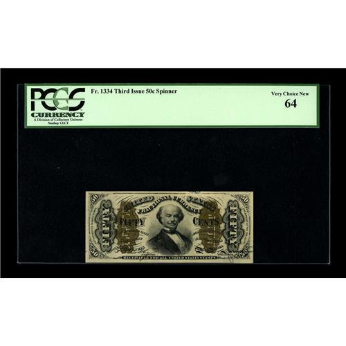 <B>Fr. 1334 50¢ Third Issue Spinner PCGS Very Choice New 64.</B></I> With a little more margin at the top, this Green Back Spinner would have had a shot at the Gem grade.<BR><I>From The Bill and Kathy Stella Currency Collection</B></I><BR><BR><b>Shipping:</b> Coin/Currency (<a target="_blank" href="http://www.heritageauctions.com/common/shipping.php">view shipping information</a>)