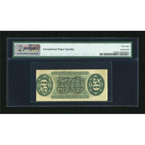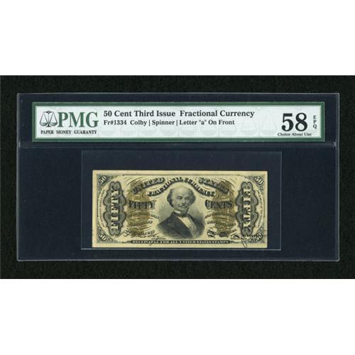 <B>Fr. 1334 50c Third Issue Spinner PMG Choice About Unc 58 EPQ.</B></I> Some corner handling is seen on this boldly embossed and broadly margined Spinner.<BR><BR><b>Shipping:</b> Coins & Currency (<a target="_blank" href="http://www.heritageauctions.com/common/shipping.php">view shipping information</a>)