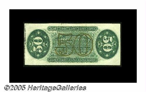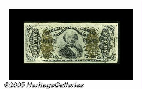 <B>Fr. 1334 Milton 3R50.19c 50¢ Third Issue Spinner Superb Gem New.</B></I> A gorgeous piece, with cavernous original embossing, ideal centering of both sides, bright bronze and tons of eye appeal. If one were looking for a nit to pick with this note, one would have to focus on the minor and nearly ubiquitous press-bed ink smears at the edges of the ultra-wide margins. No other fault can be found.