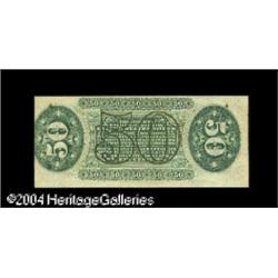 Fr. 1337 50c Third Issue Spinner Choice New. A much tou <B>Fr. 1337 50c Third Issue Spinner Choice New.</B></I> A much tougher Spinner number that grades Gem but for its back centering, which is off to the left. <BR><BR><B>Important notice:</B> Heritage usually auctions material at the rate of 200-250 lots per hour. On some occasions eBay Live bid software or the Internet may not be able to keep up with the pace of the auction. We recommend placing a realistic absentee bid now as insurance to avoid disappointment. Occasionally the auctioneer may eliminate or reject an eBay Live bid, and the auctioneer may also reopen a lot after the close of the eBay live bidding (usually because we missed an audience bid), and may reject your bid even if it shows you as the winning bidder. By bidding via eBay Live, you agree that Heritage may award the lot to another bidder at its sole discretion under the circumstances described above or any other reasonable circumstances. Since eBay bids are not shown to us until we open the lot on the floor, we treat those bids just like floor bids. In most cases the floor responds before the eBay bid is presented to us, due to Internet lag time, so for consistency we have made it a policy that floor bids are always considered first over tie eBay live bids. Also please note that all Heritage lots purchased through eBay Live carry a 20% Buyer's Premium. Please make sure you read the Terms and Conditions before you bid. This lot is being auctioned in conjunction with a live floor auction by Heritage Galleries & Auctioneers. All final auction and invoice information will be supplied by Heritage Galleries & Auctioneers, and all other information should be considered preliminary. Lot:15435
