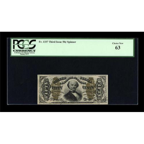<B>Fr. 1337 50c Third Issue Spinner PCGS Choice New 63.</B></I> A much scarcer number than most collectors realize.<BR><I>From The Thomas M. Flynn Collection</B></I><BR><BR><b>Shipping:</b> Coins & Currency (<a target="_blank" href="http://www.heritageauctions.com/common/shipping.php">view shipping information</a>)