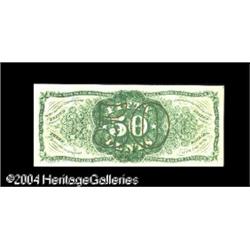 Fr. 1339 50c Third Issue Spinner Type II Very Choice Ne <B>Fr. 1339 50c Third Issue Spinner Type II Very Choice New.</B></I> Deep original embossing and beautiful colors highlight this Second back Spinner. With a hair more left face margin the note would make the full Gem grade. <BR><BR><B>Important notice:</B> Heritage usually auctions material at the rate of 200-250 lots per hour. On some occasions eBay Live bid software or the Internet may not be able to keep up with the pace of the auction. We recommend placing a realistic absentee bid now as insurance to avoid disappointment. Occasionally the auctioneer may eliminate or reject an eBay Live bid, and the auctioneer may also reopen a lot after the close of the eBay live bidding (usually because we missed an audience bid), and may reject your bid even if it shows you as the winning bidder. By bidding via eBay Live, you agree that Heritage may award the lot to another bidder at its sole discretion under the circumstances described above or any other reasonable circumstances. Since eBay bids are not shown to us until we open the lot on the floor, we treat those bids just like floor bids. In most cases the floor responds before the eBay bid is presented to us, due to Internet lag time, so for consistency we have made it a policy that floor bids are always considered first over tie eBay live bids. Also please note that all Heritage lots purchased through eBay Live carry a 20% Buyer's Premium. Please make sure you read the Terms and Conditions before you bid. This lot is being auctioned in conjunction with a live floor auction by Heritage Galleries & Auctioneers. All final auction and invoice information will be supplied by Heritage Galleries & Auctioneers, and all other information should be considered preliminary. Lot:15437