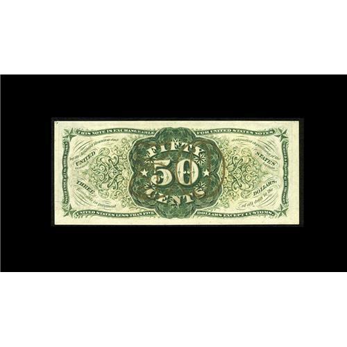 <B>Fr. 1339 50c Third Issue Spinner Type II Very Choice New.</B></I> Not quite the margins for Gem, but this original note shows a partial face plate number (49?) on the front and the number 4 is visible at upper left on the back.