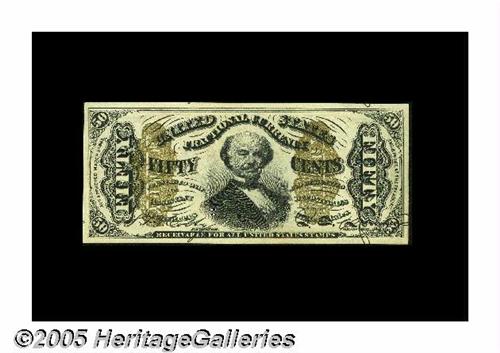 <B>Fr. 1339 Milton 3R50.21d 50¢ Third Issue Spinner Type II Superb Gem New.</B></I> This is the Milton variety on the heavier, cream-white paper. It's one of the finest examples of this elusive type that we have had the pleasure of handling. The margins are huge all the way around, the bronze is incredibly bright, and the note has cavernously deep, original embossing.