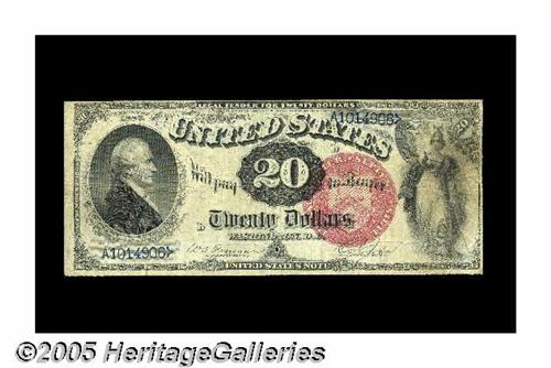 <B>Fr. 134 $20 1880 Legal Tender Fine.</B></I> With only about 50 of this number known in all grades, bidders can often become quite aggressive when examples appear at auction. This example will likely see spirited bidding.