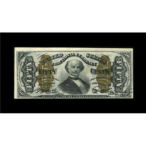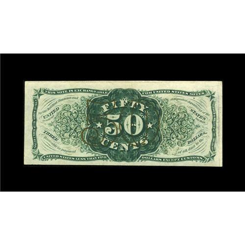 <B>Fr. 1340 50c Third Issue Spinner Type II Choice New.</B></I> A tight bottom margin limits the grade on this popular Type II. In Uncirculated states of preservation, this is a tougher issue.<BR><I>From The Bill and Kathy Stella Currency Collection</B></I><BR><BR><b>Shipping:</b> Coin/Currency (<a target="_blank" href="http://www.heritageauctions.com/common/shipping.php">view shipping information</a>)