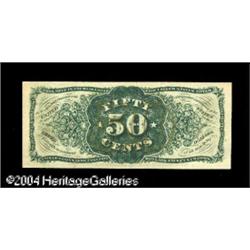 Fr. 1342 50c Third Issue Spinner Gem New. With excellen <B>Fr. 1342 50c Third Issue Spinner Gem New.</B></I> With excellent color, deep original embossing and tons of eye appeal. A scarce, and in our opinion, rather underrated number. <BR><BR><B>Important notice:</B> Heritage usually auctions material at the rate of 200-250 lots per hour. On some occasions eBay Live bid software or the Internet may not be able to keep up with the pace of the auction. We recommend placing a realistic absentee bid now as insurance to avoid disappointment. Occasionally the auctioneer may eliminate or reject an eBay Live bid, and the auctioneer may also reopen a lot after the close of the eBay live bidding (usually because we missed an audience bid), and may reject your bid even if it shows you as the winning bidder. By bidding via eBay Live, you agree that Heritage may award the lot to another bidder at its sole discretion under the circumstances described above or any other reasonable circumstances. Since eBay bids are not shown to us until we open the lot on the floor, we treat those bids just like floor bids. In most cases the floor responds before the eBay bid is presented to us, due to Internet lag time, so for consistency we have made it a policy that floor bids are always considered first over tie eBay live bids. Also please note that all Heritage lots purchased through eBay Live carry a 20% Buyer's Premium. Please make sure you read the Terms and Conditions before you bid. This lot is being auctioned in conjunction with a live floor auction by Heritage Galleries & Auctioneers. All final auction and invoice information will be supplied by Heritage Galleries & Auctioneers, and all other information should be considered preliminary. Lot:15446