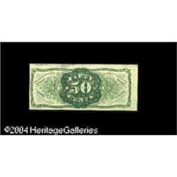 Fr. 1342 50c Third Issue Spinner Type II About New. <B>Fr. 1342 50c Third Issue Spinner Type II About New.</B></I> A single light fold away from the Choice New grade. A very tough number, which is hard to find even this nice. <BR><BR><B>Important notice:</B> Heritage usually auctions material at the rate of 200-250 lots per hour. On some occasions eBay Live bid software or the Internet may not be able to keep up with the pace of the auction. We recommend placing a realistic absentee bid now as insurance to avoid disappointment. Occasionally the auctioneer may eliminate or reject an eBay Live bid, and the auctioneer may also reopen a lot after the close of the eBay live bidding (usually because we missed an audience bid), and may reject your bid even if it shows you as the winning bidder. By bidding via eBay Live, you agree that Heritage may award the lot to another bidder at its sole discretion under the circumstances described above or any other reasonable circumstances. Since eBay bids are not shown to us until we open the lot on the floor, we treat those bids just like floor bids. In most cases the floor responds before the eBay bid is presented to us, due to Internet lag time, so for consistency we have made it a policy that floor bids are always considered first over tie eBay live bids. Also please note that all Heritage lots purchased through eBay Live carry a 20% Buyer's Premium. Please make sure you read the Terms and Conditions before you bid. This lot is being auctioned in conjunction with a live floor auction by Heritage Galleries & Auctioneers. All final auction and invoice information will be supplied by Heritage Galleries & Auctioneers, and all other information should be considered preliminary. Lot:15447