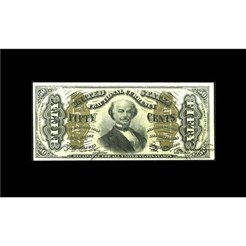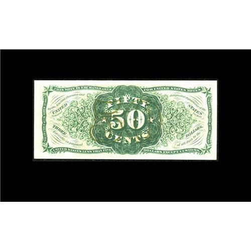 <B>Fr. 1342 50c Third Issue Spinner Type II Gem New.</B></I> This is the second toughest number of the Type II Spinners, and it's a real beauty. The margins are broad, with the top and right jumbo, the back centering is ideal and the original embossing is deep and easily seen. Add to that excellent color and bright bronze, and you have one very nice example.