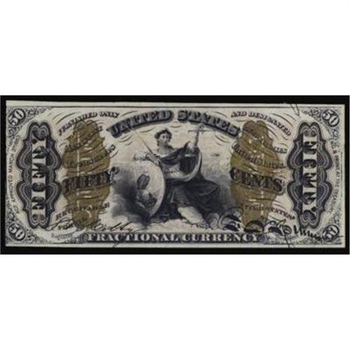 <style type="text/css"> body, td, th { font-family: Arial, Helvetica, sans-serif; font-size: 12px; color: #482424; margin: 0px; padding: 0px; } #header { background-image: url(http://www.bowersandmerena.com/ebay/images/template_v3_01.gif); clear: both; background-color: #590303; border-top-width: 2px; border-top-style: solid; border-top-color: #B38C4F;}#header #header_wrapper { height: 75px; clear: both; width: 800px; margin-right: auto; margin-left: auto; background-image: url(http://www.bowersandmerena.com/ebay/images/template_v3_03.gif); background-repeat: no-repeat; background-position: right; color: #F3EDCC;}#header #header_wrapper #header_logo { float: left; height: 75px; width: 444px; background-image: url(http://www.bowersandmerena.com/ebay/images/template_v3_02.gif); background-repeat: no-repeat; font-size: 10px; text-transform: capitalize; color: #B38C4F;}#header #header_wrapper #header_right { float: left; height: 75px; width: 356px; text-align: right;}#header #header_wrapper #header_right #headerLoginBtn { margin-bottom: 30px;}#header #header_wrapper #header_right input#txtSearch { color: #B49056; border: 1px solid #B49056; width: 175px; padding-top: 3px; padding-right: 3px; padding-bottom: 4px; padding-left: 3px;}#nav { height: 37px; background-image: url(http://www.bowersandmerena.com/ebay/images/template_v3_05.gif); clear: both;}#nav #nav_wrapper { height: 35px; width: 800px; margin-right: auto; margin-left: auto; border-left-width: 1px; border-left-style: solid; border-left-color: #B38C4F;}#nav #nav_wrapper a { padding-right: 15px; padding-left: 15px; border-right-width: 1px; border-right-style: solid; border-right-color: #B38C4F; height: 25px; padding-top: 10px; display: block; float: left; text-decoration: none; font-weight: bold; color: #5D0303;}#nav #nav_wrapper a:hover { color: #B38C4F;}#nav #nav_wrapper #search { float: right; padding-top: 7px;}#nav #nav_wrapper #search #txtSearch { font-family: Arial, Helvetica, sans-serif; font-size: 10px; text-transform: uppercase; color: #D2AE75; border: 1px solid #B38C4F; padding: 3px;}#content_bgd { background-image: url(http://www.bowersandmerena.com/ebay/images/template_v3_09.gif); background-repeat: repeat-y; background-position: center; padding-top: 15px; padding-bottom: 15px; background-color: #FBFBDB;}#content_wrapper { clear: both; height: auto; width: 800px; margin-right: auto; margin-left: auto;}.LotDetailWhite{ line-height:normal; font-size:13px; font-family: arial,helvetica,sans-serif; color: White; font-weight: bold;}.LotDetailInformation{ line-height:normal; font-size: 13px; font-family: arial,helvetica,sans-serif;}.LotDetailMessage{ line-height:normal; font-size: 13px; font-family: arial,helvetica,sans-serif; color: red;}}tr.HeaderAuctionTitle td { color: #000000; font-weight: bold; padding: 2px; background-image: url(http://www.bowersandmerena.com/ebay/images/template_v3_05.gif); background-repeat: repeat-x; border-bottom-width: 1px; border-bottom-style: solid; border-bottom-color: #B38C4F;}table.AuctionSummary a, table.AuctionSummary a:link, table.AuctionSummary a:visited { color: #0000FF; text-decoration: none;}}td.tableHeaderLeft { border-left-width: 1px; border-left-style: solid; border-left-color: #B38C4F;}td.tableHeaderRight { border-right-width: 1px; border-right-style: solid; border-right-color: #B38C4F;}td.tableCellMiddle { border-left-width: 1px; border-left-style: solid; border-left-color: #B38C4F; border-right-width: 1px; border-right-style: solid; border-right-color: #B38C4F; padding: 5px;}tr.footer td { border-top-width: 1px; border-top-style: solid; border-top-color: #B38C4F;}</style></head><body><div id="header"> <div id="header_wrapper"> <div id="header_logo"> </div> <div id="header_right"> </div> </div></div><div id="nav"> <div id="nav_wrapper"> <a href="http://www.bowersandmerena.com">Our eBayLive Auctions</a> <a href="#PaymentInfo">Payment Information</a> <a href="#ShippingInfo">Shipping Information</a> <a href="#About">About Bowers and Merena</a> </div></div><div id="content_bgd"> <div id="content_wrapper"> <table width="100%" border="0" cellpadding="5" cellspacing="0" class="AuctionSummary"> <tbody> <tr class="HeaderAuctionTitle" style="height: 25px;"> <td align="left" class="tableHeaderLeft" > </td> <td align="center" class="tableHeaderRight"> <span style="font-size: large;">Lot #30. Fr. 1343. 50 Cents. Third Issue. Justice. PMG Choice Uncirculated 64EPQ.</span> </td> </tr> <tr> <td colspan="3" class="tableCellMiddle"> A premium-quality Red Back Justice note with fully bright bronze surcharges, a well centered back and a tight margin on the face at left. It is the rare exception to find a Justice note with two full side margins on the face, due to the narrow space between notes on the printing plates for this issue. Est. $950 - $1,250